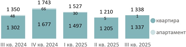 В III квартале 2025 года на рынке новостроек премиум-класса было зарегистрировано 1,34 тыс. ДДУ (+11% за квартал, -1% за год). Максимальное число сделок было заключено в сентябре (495 ДДУ), минимальное – в августе (377 ДДУ).