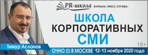 Приглашаем вас на специальный модуль Пиаршколы журнала «Пресс-служба» – «ШКОЛА КОРПОРАТИВНЫХ СМИ», который пройдет очно (!) в Москве 12-13 ноября 2020 года.