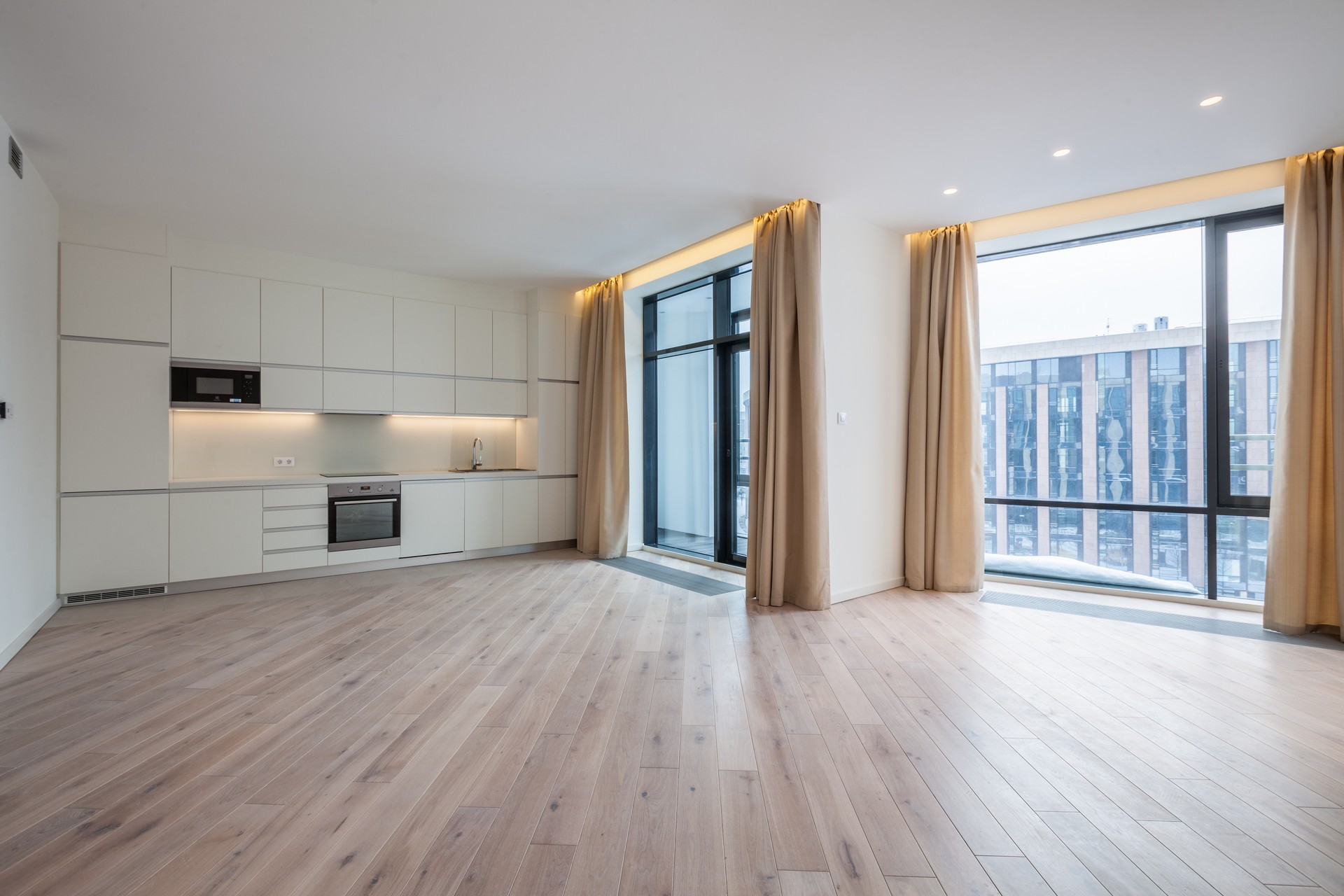 Во всех квартирах установлены панорамные окна, чтобы пространство было максимально светлым. Но это не нарушит приватность личной жизни – стекло пропускает свет только в одну сторону, поэтому с улицы не видно, что происходит внутри. Также в квартирах улучшенная шумоизоляция, чтобы даже шумные соседи не мешали друг другу.