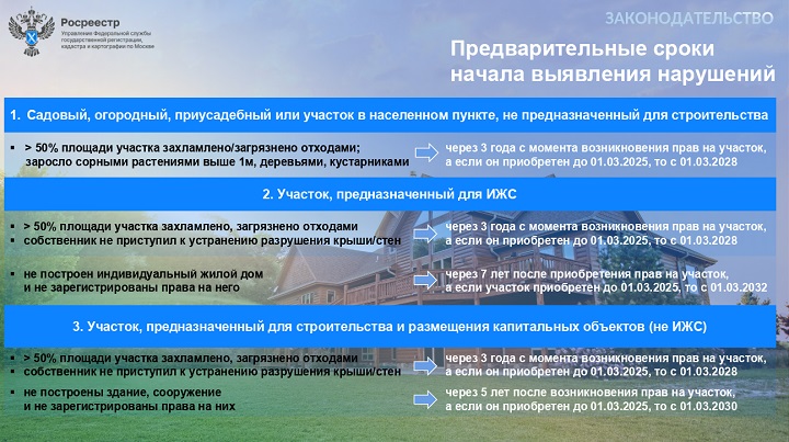 Основные условия и сроки, когда в столице начнут выявлять нарушения земельного законодательства по новым правилам озвучил на заседании Общественного совета при Управлении Росреестра по Москве начальник отдела государственного земельного надзора Роман Дубовицкий.
