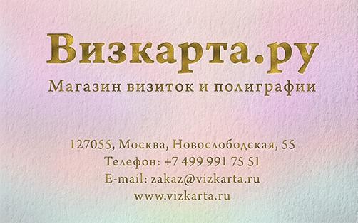 Богатый опыт и знание всех тонкостей полиграфического дела, квалифицированный персонал и высокотехнологичная техника позволяют компании «Визкарта» предлагать своим клиентам изготовление как стандартных, так и эксклюзивных визитных карточек. Спектр материалов не ограничивается мелованной бумагой и обычным картоном, включая в себя такие оригинальные варианты как: