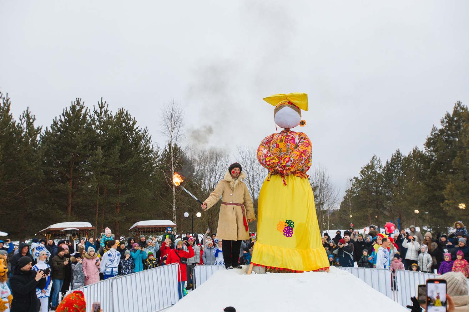 Гостей Масленицы ждут: песни, танцы, хороводы, веселые конкурсы, аппетитные блины и согревающие угощенья, тематические мастер-классы и представления, скоморохи, ходулисты, масленичный столб, праздничная лотерея и сжигание чучела в финале. Программа рассчитана на взрослых и детей.