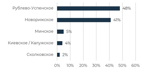Структура предложения загородной недвижимости Московского региона в аренду по направлениям