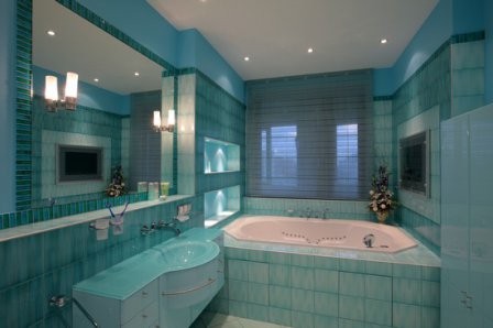 Эстетически оформленная ванна под ключ, обязательно продемонстрирует умение мастеров аккуратно прятать средства коммуникации под конструкции из гипсокартона. Отдельного внимания заслуживает электрическая проводка. Здесь на смену старым, алюминиевым пришли долговечные медные. Розетки и выключатели должны устанавливаться в местах, защищённых от попадания брызг воды и влаги.