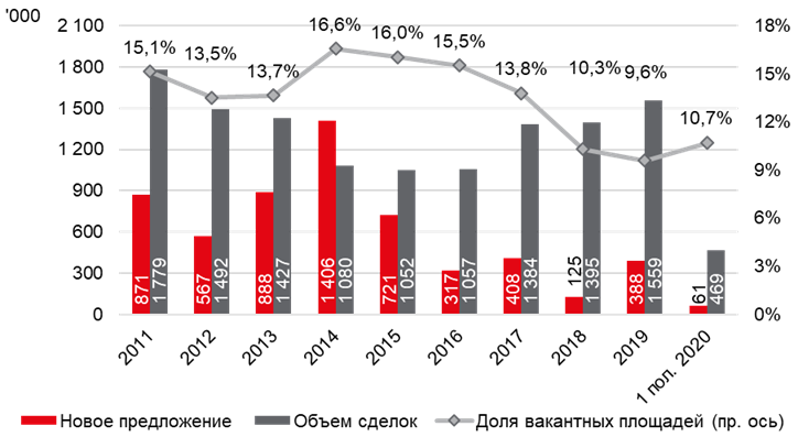 Динамика нового предложения, вакантности и объема сделок