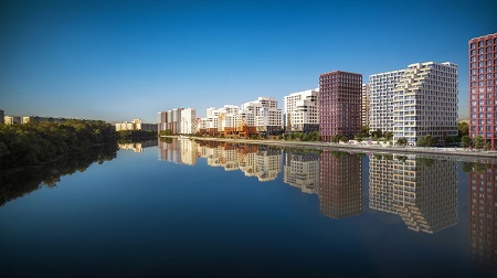 Следующий представитель, заслуживающий внимания нашего рейтинга – Городские кварталы «Ривер парк» - жилой комплекс бизнес-класса, расположенный на территории района Нагатинский затон, на берегу Москвы-реки, рядом с музеем-заповедником «Коломенское». Это единственный столичный проект, в котором от ближайших домов до воды нужно пройти всего 20 метров, чтобы попасть на живописную прогулочную набережную длиной 1,5 км. Красивый природный пейзаж дарит умиротворение и позволяет снять напряжение. Наблюдать прямо из квартиры открытое водное пространство, любоваться восходами и закатами, радугами мечтают многие, но сегодня это редкость в плотно застраиваемом городе. Общая площадь территории «Ривер Парк» - 29 га. Из них только 30% земли занимают жилые дома высотой от 9 до 19 этажей. Реализация проекта ведется в два этапа. Строительство первой фазы уже завершено. Сегодня ведется реализация второй фазы проекта, включающей еще 4 жилых корпуса, корпуса с апартаментами, образовательный центр, торгово-развлекательный центр, паркинг, а также второй участок набережной и зоны рекреации. Территория между зданиями включает в себя школу, детский сад, детские площадки с зонами игр для детей младшего и школьного возрастов, спортивные площадки. На набережной – прогулочная зона, велодорожки и инновационная спортплощадка Punto fit, предназначенную для занятий на открытом воздухе, здесь есть даже видеоуроки для тренировок. Для жильцов предусмотрены подземные и наземные паркинги. Станции метро «Кленовый бульвар» и «Нагатинский затон» – в пределах 7 минут ходьбы. Размер квартир – от 33м2, цены стартуют от 255 тысяч за квадратный метр. Класс: бизнес.