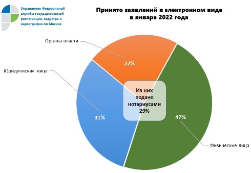 Управлением Росреестра по Москве в январе 2022 года принято 55 929 заявлений в электронном виде на регистрацию прав и постановку на кадастровый учет объектов недвижимости. Данный показатель на 48,2% больше результата прошлого года за аналогичный период (37 745).