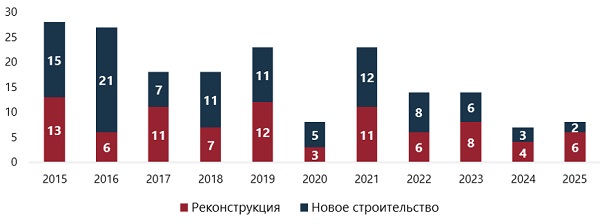 Третий год подряд реконструкция опережает новое строительство и по количеству объектов, и по площади. С начала 2025 года завершена реконструкция шести зданий под офисные функции, тогда как новое строительство представлено лишь двумя объектами. В ближайшие полгода ожидается завершение реконструкции еще не менее шести зданий, тогда как единственным новым проектом станет «Орими Центр». Сейчас на стадии реконструкции под бизнес-центры находятся такие исторические объекты, как здание Министерства внутренних дел на Фонтанке, здание Карточной фабрики на пр-те Обуховской Обороны, здание заводоуправления Сталепрокатного завода на Васильевском острове, здание фабрики «Скороход» и другие.