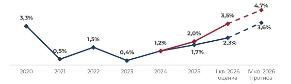 По предварительным итогам I квартала 2026 года доля свободных складских площадей в Санкт-Петербурге и Ленинградской области достигла 3,5% с учетом субаренды, увеличившись на 1,5 п. п. в сравнении с концом 2025 года. Без учета субарендных предложений значение составляет 2,3%. К концу 2026 года уровень вакантности на рынке складской недвижимости в регионе может увеличиться до 4,7% с учетом субаренды или 3,6% без нее.